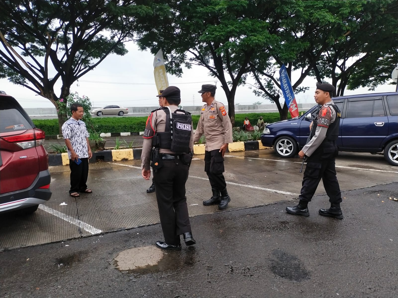 Patroli Polsek Pabedilan Polresta Cirebon berikan situasi yang aman dan kondusif bagi masyarakat yang sedang istirahat di Rest Area Km 228 A Cirebon.