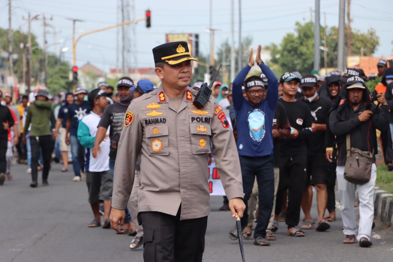“Kami dari Polres Tegal Kota akan mengawal dan mengamankan kegiatan penyampaian aspirasi dari saudara kita para nelayan, mohon kooperatif dan sampaikan aspirasi dengan baik,” imbaunya.