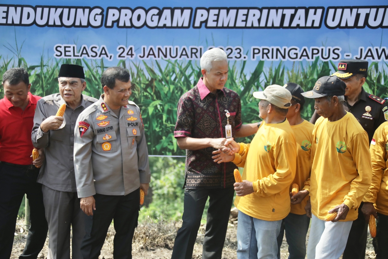 Penanaman jagung dilaksanakan secara simbolis oleh Kapolda Jateng Irjen Pol Ahmad Luthfi bersama jajaran Forkopimda Jateng diantaranya Gubernur Ganjar Pranowo, Pangdam IV/Diponegoro Mayjen TNI Widi Prasetijono, Kajati Jateng I Made Suanarwan, dan Kadiv Regional Perhutani Jateng R Ratmanto Trimahono.