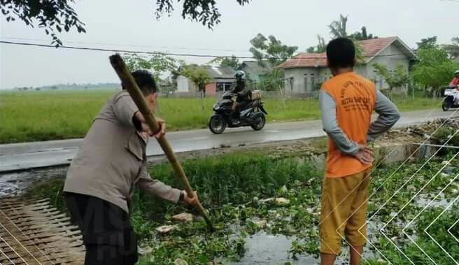 Polsek Tirtajaya Polres Karawang Polda Jabar, Bhabinkamtibmas beserta jajaran menggelar aksi bersih-bersih dan mengangkat eceng gondok dan sampah di Jembatan Tambaksari dusun Pilang RT.002/001 Desa Tambaksari Kecamatan Tirtajaya Kabupaten Karawang, Sabtu (28/1/2023).
