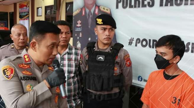 Kapolres Tasikmalaya Kota Polda Jabar AKBP Aszhari Kurniawan saat Konferensi Pers mengatakan bahwa pihaknya berhasil mengamankan tersangka MF (24) seorang Mahasiswa yang merupakan warga Kecamatan Cibeureum Kota Tasikmalaya.
