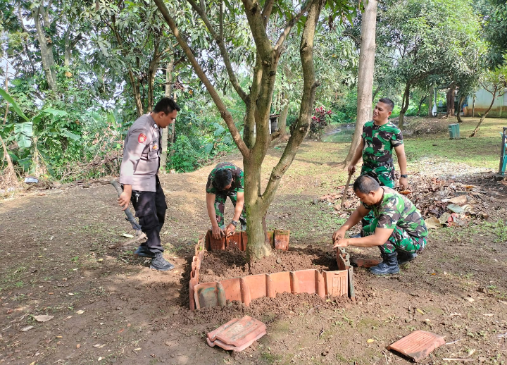 Indahnya Kebersamaan, TNI-Polri di Rajagaluh Gotong Royong Pembuatan Tempat Persemaian Bibit