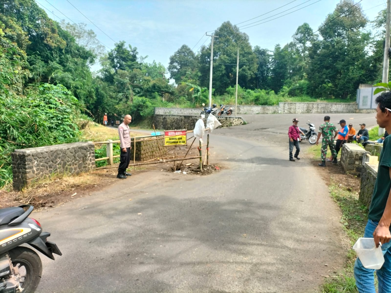 Antisipasi Kecelakaan, Bhabinkamtibmas Polsek Sukahaji Bersama Babinsa Tandai Jalan Berlubang