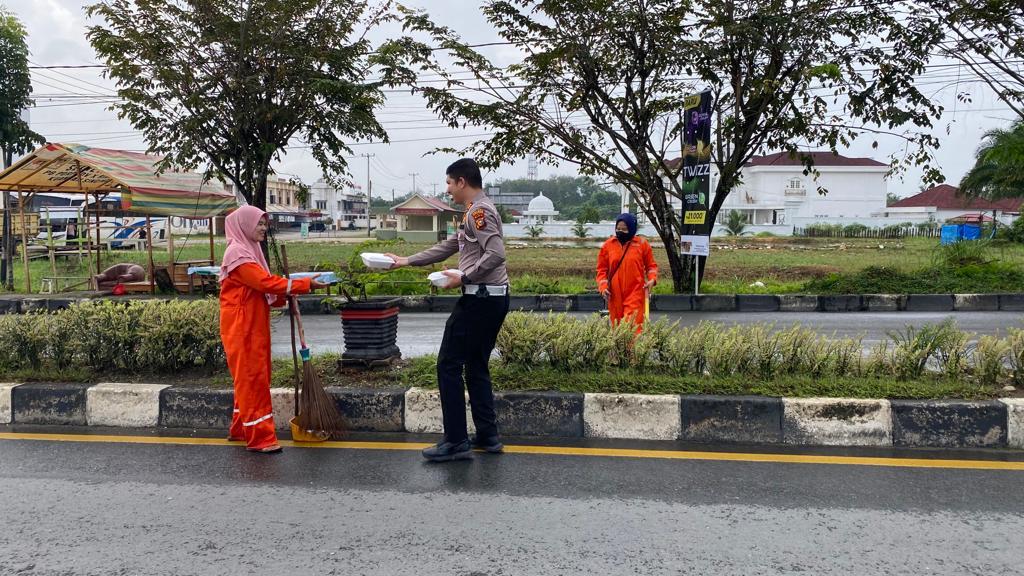 Jajaran Satlantas Polres Kuantan Singingi (Kuansing) membuat terobosan yang sangat menyentuh bagi warga Kota Teluk Kuantan dalam menjalankan Kegiatan Jumat Barokah. Salah satunya Memberi Nasi Kotak dan Sembako Kepada tukang sapu,ojol, tukang Parkir dan warga kawasan Teluk Kuantan Kecamatan Kuantan Tengah Jumat (10/3/2023) Pagi Sekira Pukul 10.00 WIB