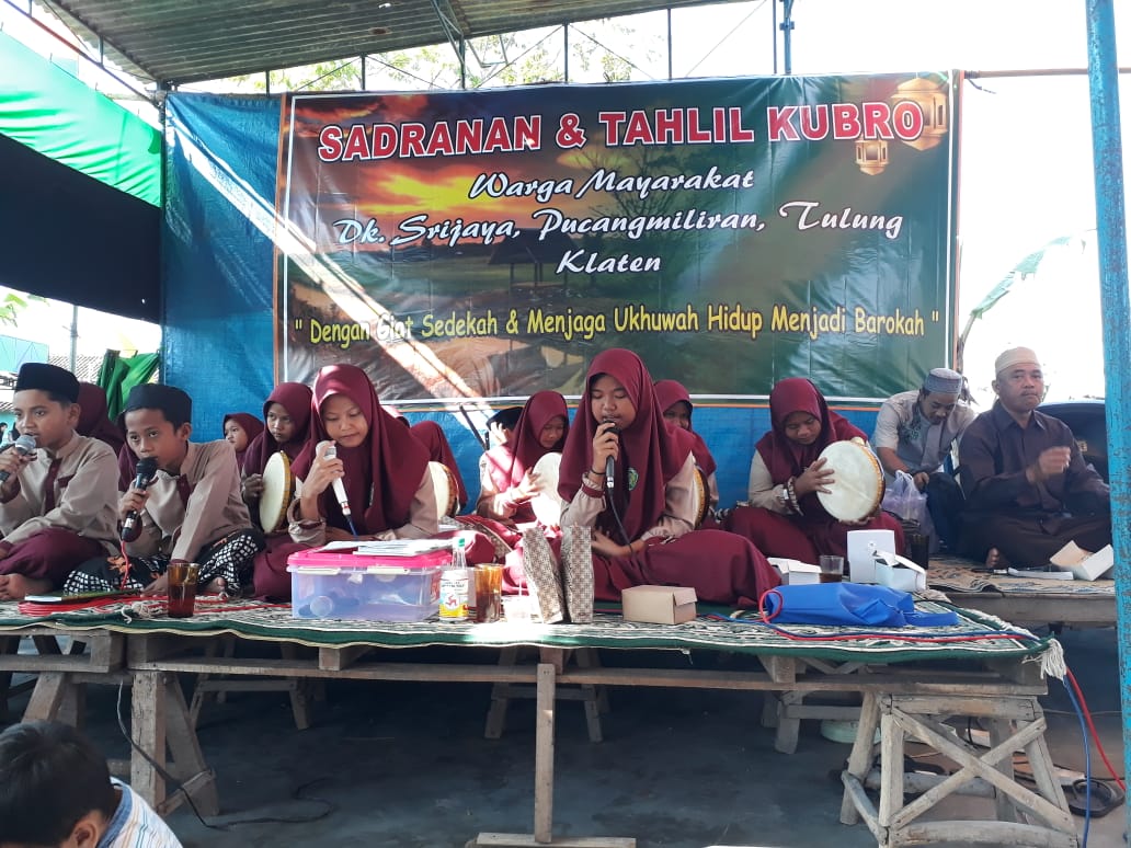 acarapun tidak berhenti disini, ternyata acara Sadranan dan Tahlil kubro, masih juga di iringi Hadroh anak anak pengajian Putra – Putri dari Madjid Alfallah Srijaya. ( Samira )