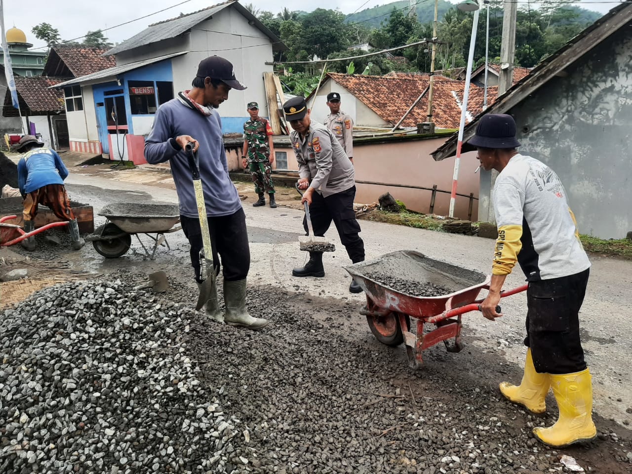 Wujud Kepedulian Polri Ikut Serta Gotong Royong Dalam Pembuatan Jalan Gang