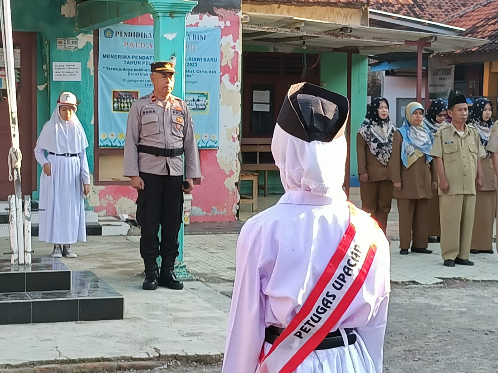 Dalam rangka pembinaan dan penyuluhan tentang kenakalan remaja, Kanit Binmas IPDA RANA bertugas sebagai Pembina Upacara Bendera di SDN 1 Kepongpongan Kec. Talun Kab Cirebon, Talun ( 15/02/2023 )