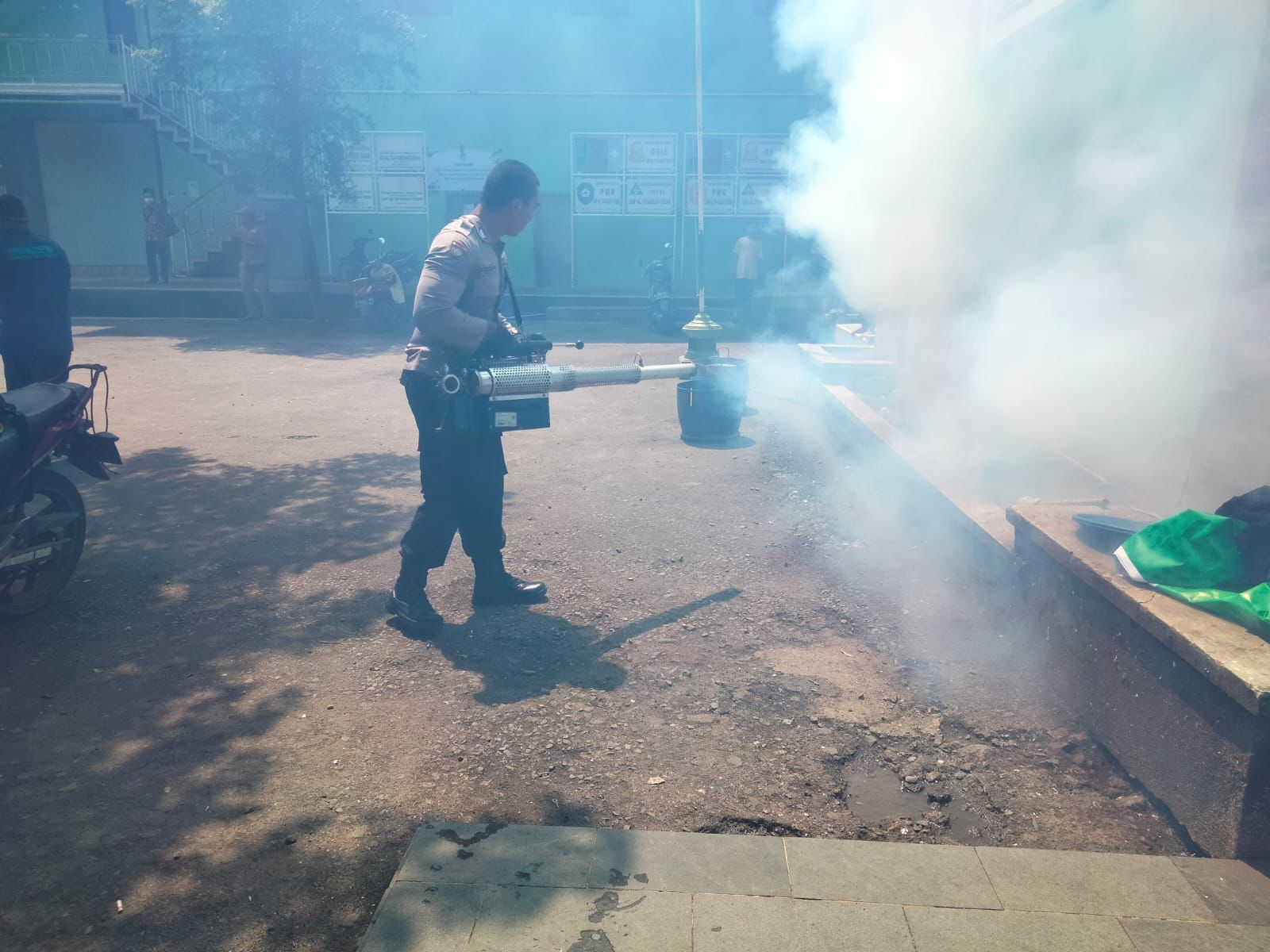 Upaya Cegah DBD, Polisi Bersama Instansi Terkait Lakukan Fogging di Ponpes Mursyidul Falah