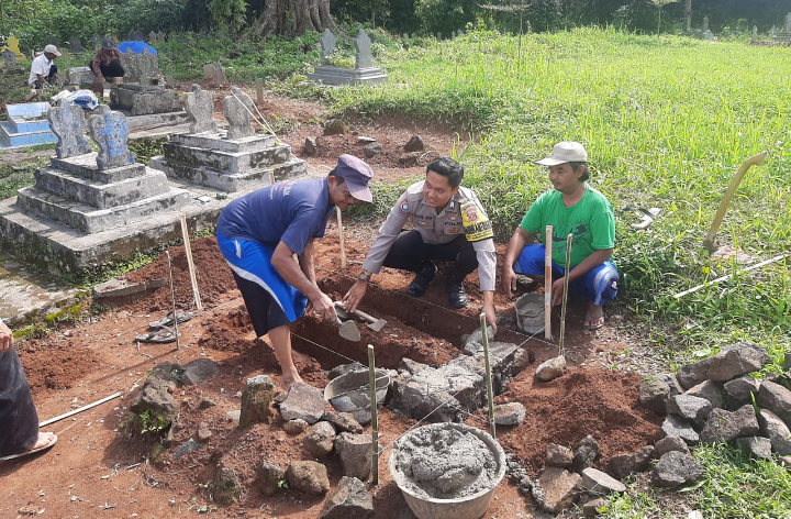 Bhabinkamtibmas Polsek Sindangwangi Bersama Masyarakat Lakukan Kerja Bakti Bantu Warga Pemasangan Batu Nisan