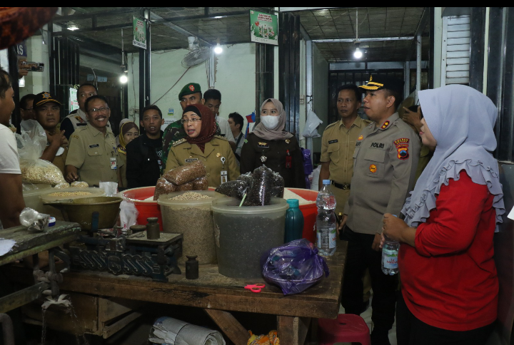 Mendekati Bulan Suci Ramadzan, Penjabat Bupati Batang, Lani Dwi Rejeki, bersama Forkopimda Batang melakukan inspeksi mendadak ke Pasar Batang, Senin (20/03/2023).