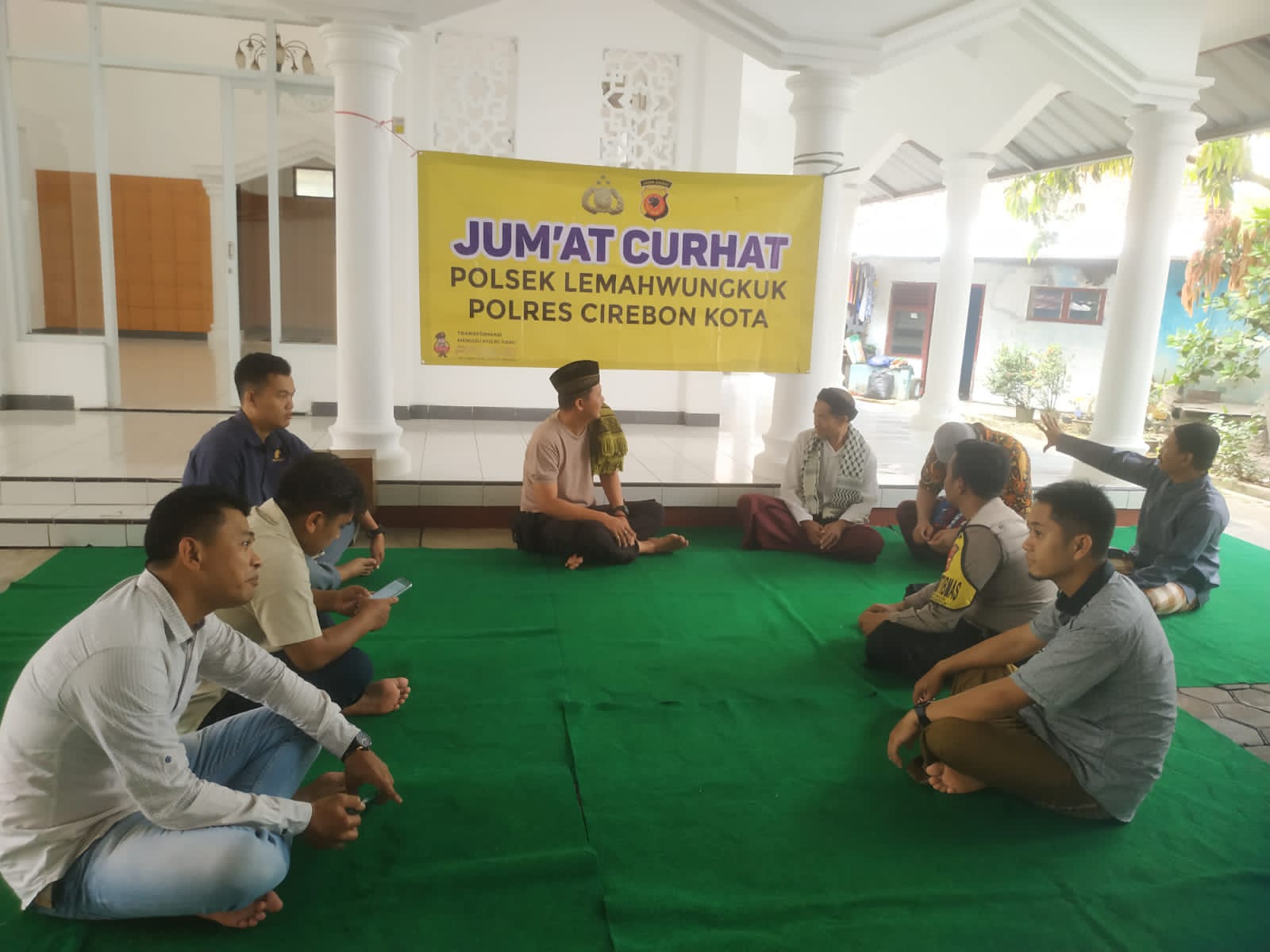 Polsek Lemahwungkuk Polres Cirebon Kota Polda Jabar gelar program Jumat Curhat di Masjid Nurul Huda Kelurahan Pegambiran Kecamatan. Lemahwungkuk Kota Cirebon, jumat ( 31/02/2023).