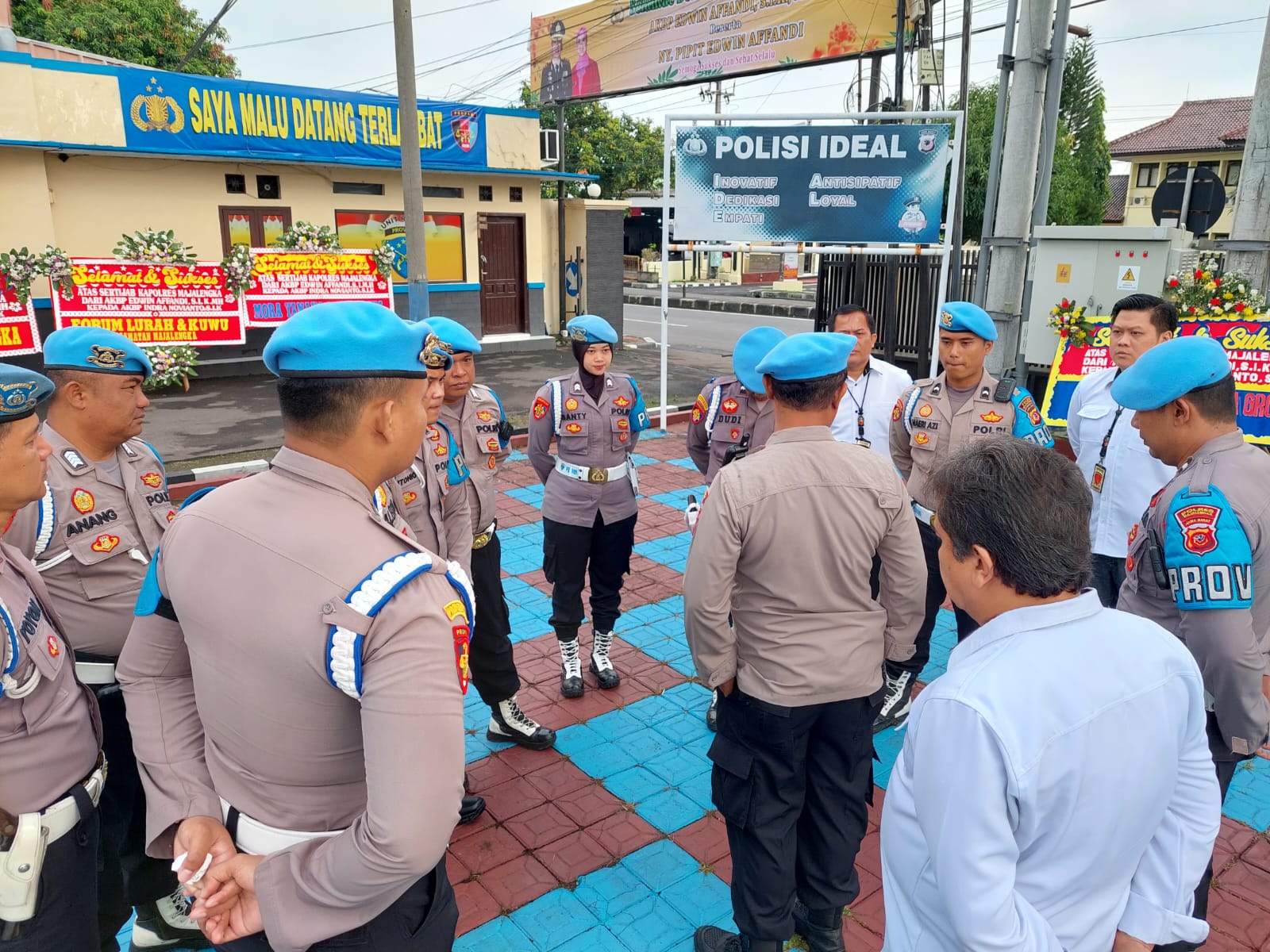 Majalengka,Patrolinews86.com.Kasi Propam Polres Majalengka Polda Jabar AKP Sarjiyo memberikan arahan kepada anggota Sie Propam Polres Majalengka di Lapangan Apel Mapolres Majalengka,Jumat (7/4/2023).