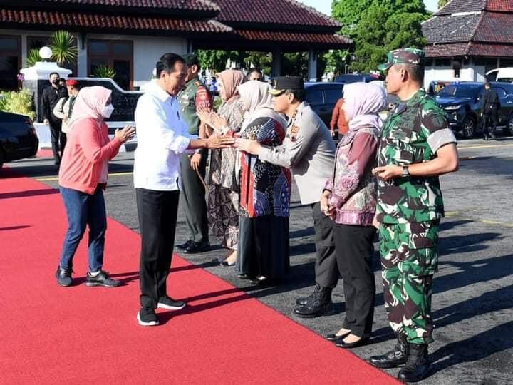 Tampak melepas keberangkatan Presiden dan Ibu Iriana yaitu Pangdam IV/Diponegoro Mayjen TNI Widi Prasetijono beserta istri, Kapolda Jawa Tengah Irjen Pol Ahmad Luthfi, dan Danrem 074/Warastratama Kolonel Inf. Anan Nurakhman beserta istri.