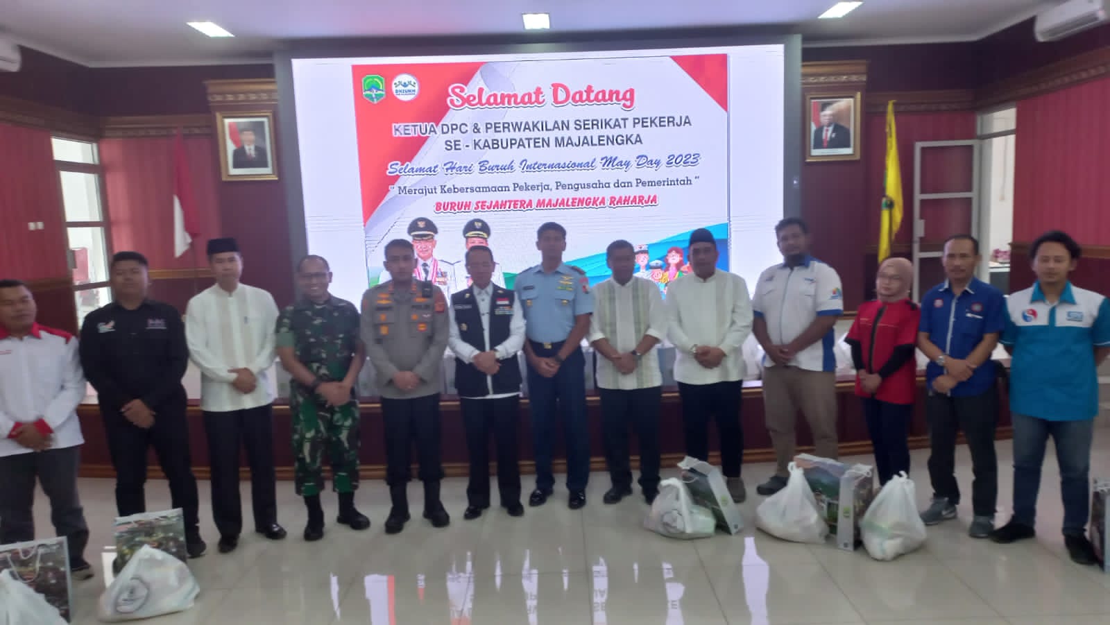 Pemerintah Kabupaten Majalengka mengadakan silaturahmi dengan Serikat Pekerja buruh Pabrik se – Kabupaten Majalengka dalam rangkain peringatan Hari Buruh bertempat di Gedung Yudha Karya Pemda Majalengka Rabu ( 03/05/2023).