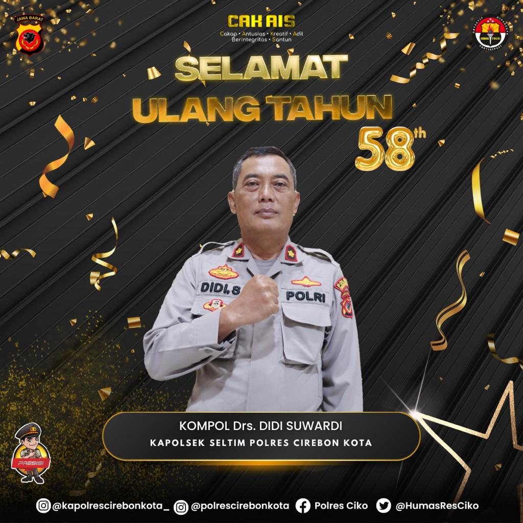 KOMPOL Drs. Didi Suwardi, Kapolsek Selatan Timur (Seltim), merayakan hari bahagia ulang tahun ke-58 pada hari ini. Dia mengucapkan rasa syukur atas bertambahnya usianya. Sabtu (6.5.23).