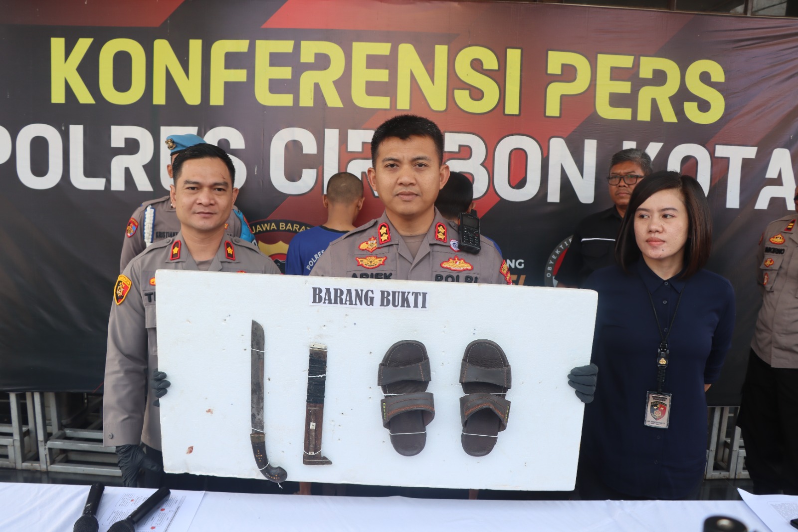 Adapun barang bukti yang diamankan oleh tim Sat Reskrim Polres Cirebon Kota berupa satu buah golok beserta sarungnya, satu pasang sandal Pakalolo, dan satu buah flashdisk rekaman perampokan.