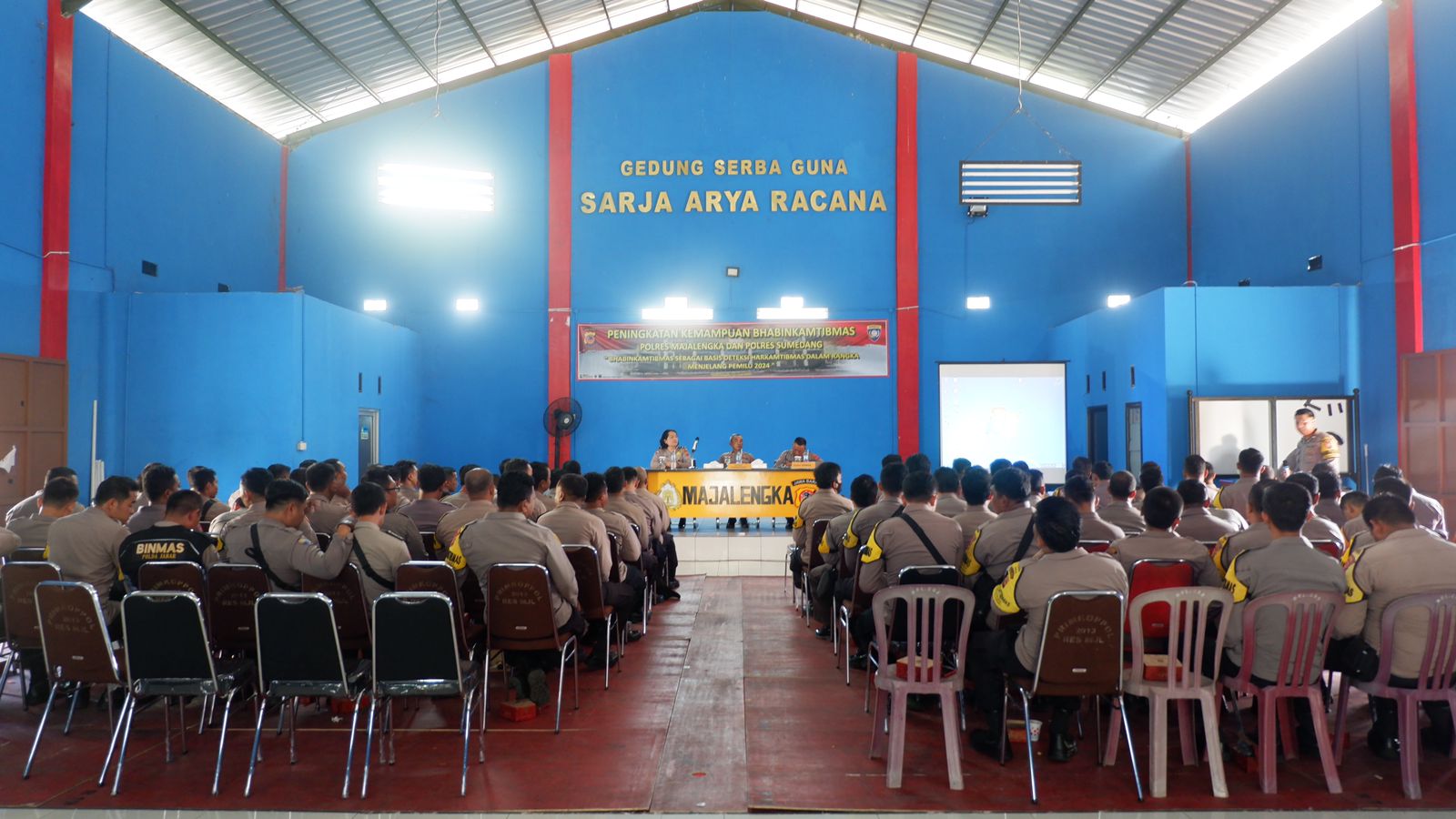 Majalengka,Patrolinews86.com.Dalam Rangka meningkatkan kemampuan personel Bhabinkamtibmas Jajaran Polres Majalengka dan Polres Sumedang guna menciptakan situasi kamtibmas yang aman dan kondusif jelang Pemilu 2024, Rabu (10/5/2023).