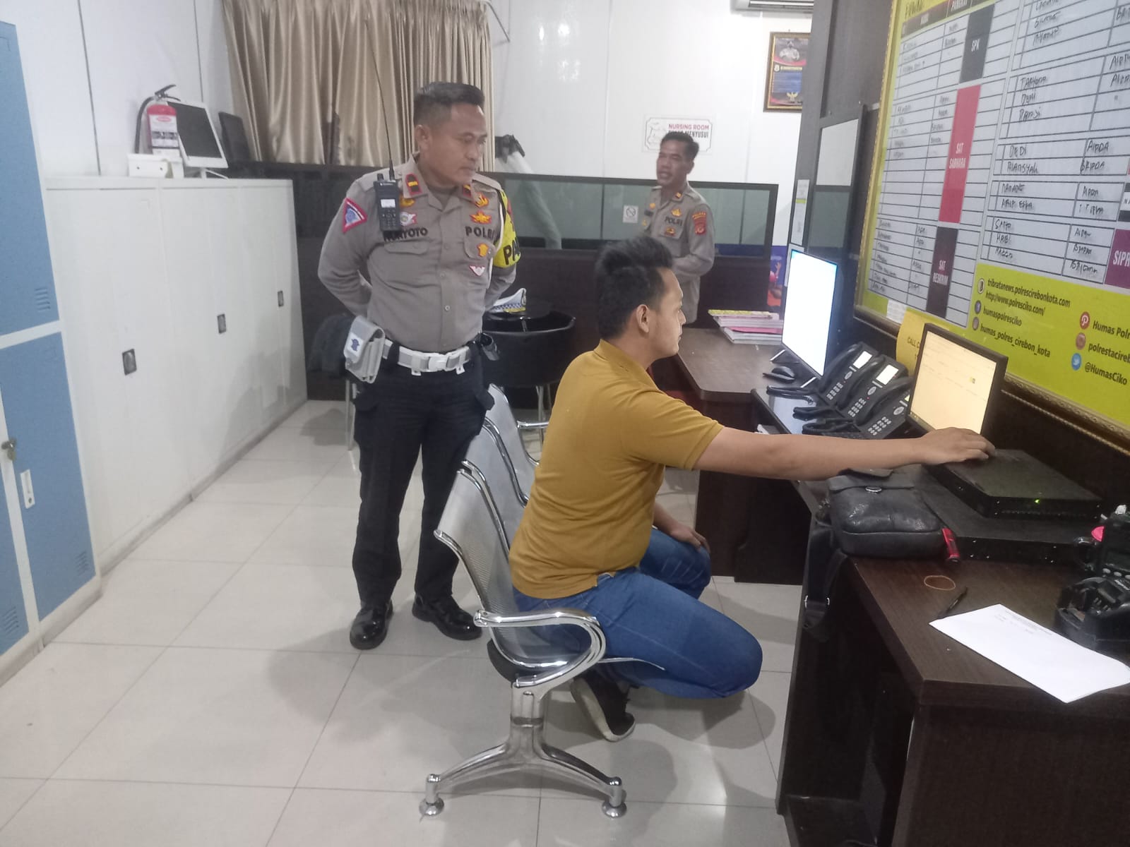 POLRES CIREBON KOTA, Patrolinews86.com – Dalam rangka mendukung program Kapolri dalam optimalisasi pelayanan pada masyarakat. Polres Cirebon kota menempatkan seorang operator piket call center 110. Saat ini dilaksanakan oleh Brigadir Deni Wahyu untuk menampung laporan dan pengaduan masyarakat. Dalam pengawasan piket pawas IPDA Nuryoto. Sabtu malam (13.5.23)