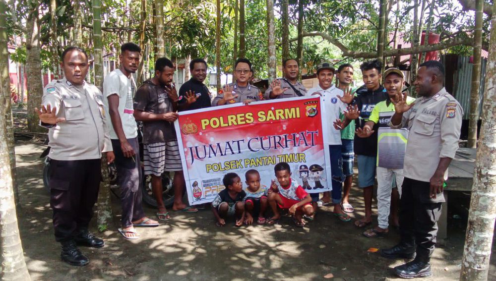 Sarmi, Papua patrolinews86.com  – Guna menjalin kemitraan dengan para tokoh masyarakat, personil Polsek Pantai Timur, Polres Sarmi, Papua, menggelar Jumat Curhat di Kampung Asyaaf, Distrik Pantai Timur Barat, Kabupaten Sarmi, Papua, Jumat siang (19/05/23). Acara ini dilakukan dalam rangka mewujudkan pelayanan prima kepolisian kepada warganya.