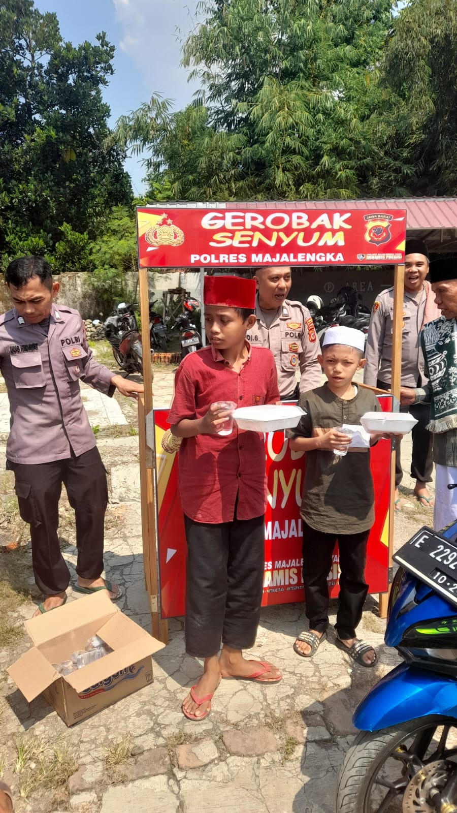 Kapolres Majalengka AKBP Indra Novianto, S.I.K mengatakan, pembagian makanan gratis bagi jamaah masjid tersebut merupakan program gerobak senyum Polres Majalengka yang dilakukan setiap hari Jum’at.