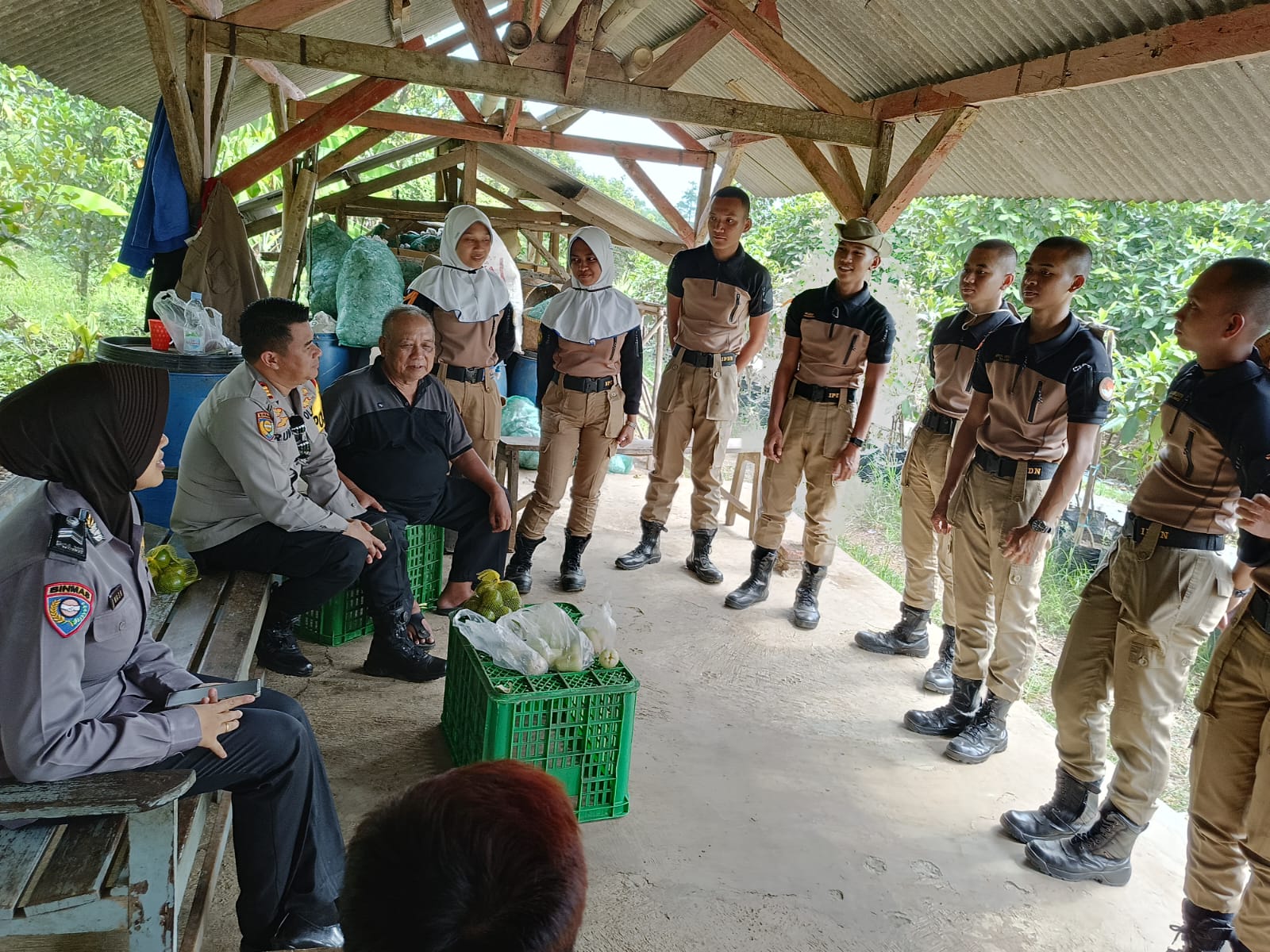 Majalengka,Patrolinews86.com.Kapolsek Sukahaji Polres Majalengka AKP Rudy Djunardi melaksanakan Silaturahmi sekaligus monitoring Kegiatan Latja Taruna Praja IPDN Taman Bunga Jatinangor di Lahan pertanian tanaman bibit Jeruk dan tanaman Jambu milik Bapak Heri di Desa Jayi Kecamatan Sukahaji Kabupaten Majalengka, Jumat (16/06/2023).