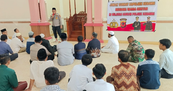 Polsek kesambi di pimpin langsung Kapolsek IPTU Rudiana, SH.MH bersama Jajaran menggelar Jumat Curhat di Masjid Luhur Al Kautsar Jl. Yudhasari Rw.10 Kel. Sunyaragi Cirebon kota. jumat (23/.05/2023)