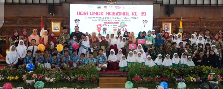 KLATEN – Patrolinews86.com. Puncak peringatan Hari Anak Nasional (HAN) ke – 39 Kabupaten Klaten yang digelar di Pendapa Ageng Kabupaten Klaten, Selasa (25/07/2023) berlangsung meriah.