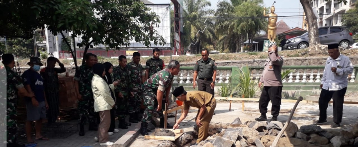 Peletakan batu pertama pembangunan Mushola di samping Koramil dilakukan oleh Danramil, Kapolsek, Camat dan Pejabat dari KUA Kecamatan Mojosongo dilanjutkan dengan pembacaan doa.