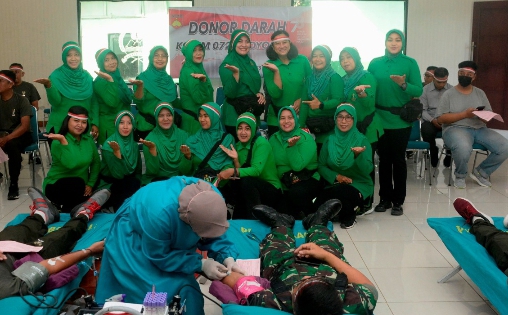 Bakti sosial donor darah diikuti personel anggota Kodim 0724/Boyolali, Persit Kartika Chandra Kirana Cabang XLV Kodim 0724/Boyolali, Ormas dan warga masyarakat. Kegiatan donor darah dimulai pukul 08.00 WIB.