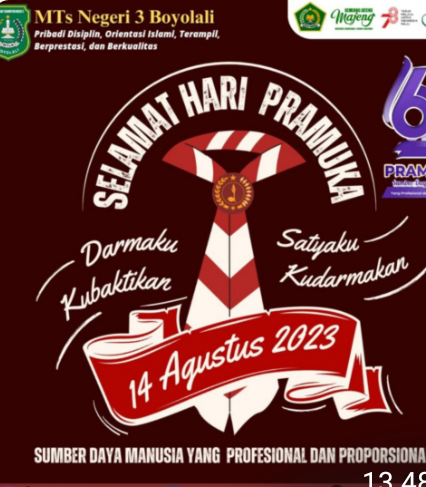 TIdak Ketinggalan di MTsN 3 Boyolali, juga mengadakan Upacara Hari Pramuka Ke – 62 yang berlangsung dengan sangat khidmat, peserta upacara tampak serius mengikuti rangkaian hari besar Pramuka ini , Senin (14/08/2023) pagi.