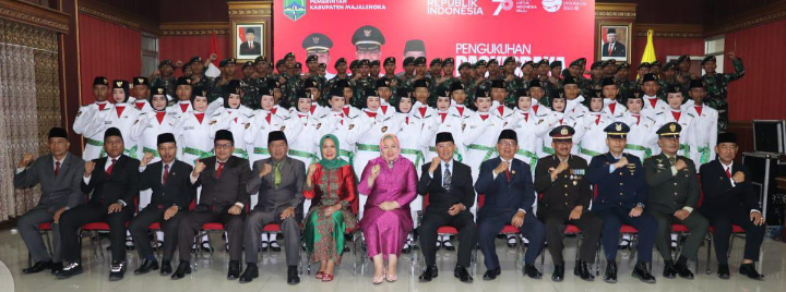 Bupati Majalengka, Dr. H. Karna Sobahi, M. MPd, mengukuhkan Pasukan Pengibar Bendera Pusaka (Paskibraka) Kabupaten Majalengka tahun 2023 di Gedung Yudha Karya , Senin (14/8/2023) malam.