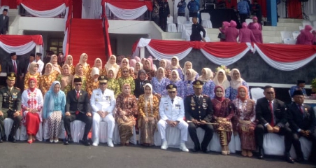 “Kepada Sang merah Putih hormat senjata gerak, tegak senjata, Pengibaran Sang Merah Putih telah dilaksanakan, kembali ke tempat,” Pembacaan Proklamasi Kemerdekaan Republik Indonesia atas nama Bangsa Indonesia Soekarno – Hata dibacakan oleh Cik Ujang, SH Bupati Lahat dan pembacaan do’a dibabacakan oleh Kepala Kementerian Agama Kabupaten Lahat Upacara Selesai Pasukkan dibukarkan.”