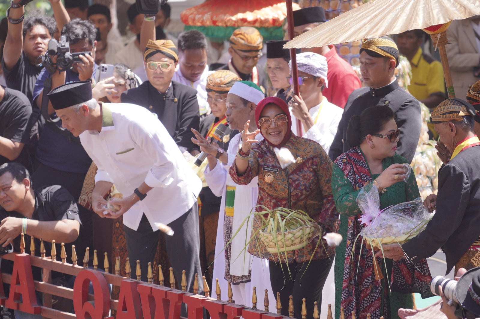 Setelah di Doakan bersama sama, kue Apem secara simbolis langsung disebarkan oleh Bapak Ganjar Pranowo, Bupati Klaten dan Wakil Bupati, juga Ratu Permaisuri PAKUBUWONO XIII.