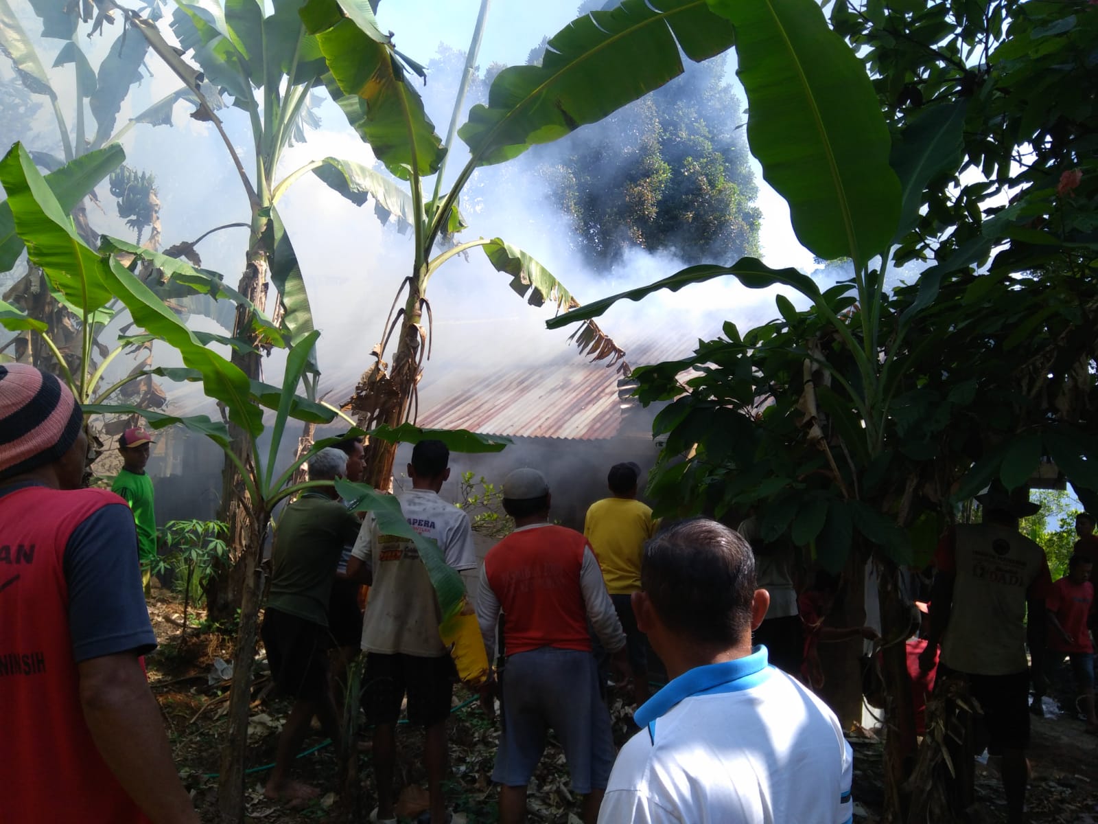 Bersama warga, Polsek dan Koramil Lebakbarang berusaha untuk memadamkan kobaran api. Dan sekitar pukul 10.00 wib, api berhasil dipadamkan.