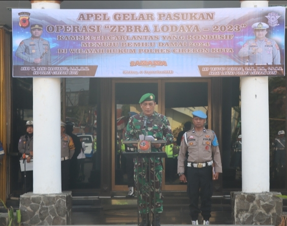 Bertindak selaku pimpinan apel Dandim 0614 Kota Cirebon LETKOL Robil Syaifullah di dampingi Dandenpom III/SLW LETKOL. Cpm. Mudhofar, S.Pd.,Serta di Hadiri Wakapolres Cirebon Kota KOMPOL Ahmat Troy Aprio S.H.,S.Ik, Kasat Pol PP Kota Cirebon EDI SISWOYO, S.AP, PJU Polres Cirebon Kota,Perwira serta Seluruh Peserta Apel Gelar Pasukan Ops Zebra Lodaya 2023.