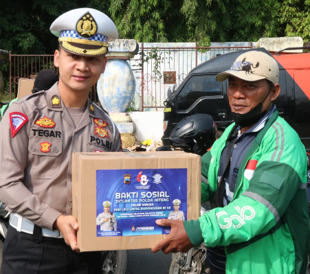 “Hari ini kami dari Ditlantas Bersama stakeholder terkait membagikan bantuan sosial kepada warga dengan sasaran antara lain komunitas supeltas, ojek online dan sopir angkot dalam rangka Hari Lalu Lintas Bhayangkara Ke-68 dan juga sosialisasi Operasi Zebra Candi tahun 2023,” ungkap AKBP Doni Prakoso.