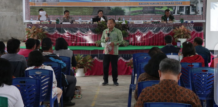Pemerintah Kabupaten Toba melalui Bagian Hukum Setdakab Toba menggelar sosialisasi peraturan perundang-undangan dengan “Tema Pencegahan Tindak Pidana Kekerasan Seksual, Perlindungan Perempuan dan Anak”, yang diselenggarakan di Balai Pertemuan Kantor Camat Laguboti, Jumat (22/9/2023).