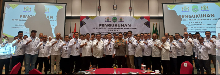 Ketua Kamar Dagang dan Industri ( KADIN ) Jawa Barat melantik kepengurusan KADIN Majalengka masa bakti 2023 – 2028 bertempat di hotel Fieris Kertajati Majalengka , Rabu ( 27/09/2023 ).