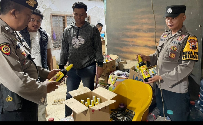 Ciptakan Kondusifitas Kamtibmas, Puluhan Botol Minuman Keras Disita dalam Razia yang Digelar Polsek Sragi.