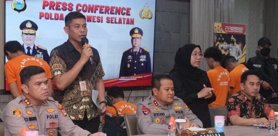 Makassar,Patrolinews86.com-Kapolda Sulsel Irjen Pol Drs. Setyo Boedi Moempoeni Harso, S.H., M.Hum didampingi Kombes Pol. Jamaluddin Farti, S.I.K, M.Hum., Kabid Humas Polda Sulsel Kombes Pol. Komang Suartana, S.H., S.I.K., M.H., Kapolres Gowa AKBP Reonald Trauli Simanjuntak, S.I.K., S.H., M.M., M.I.K. melaksanakan Konferensi Pers Kasus tindak pidana pembunuhan berencana yang menyebabkan 3 Korban meninggal dunia di Kab .Gowa. Jumat (06/10/2023) di Mapolda Sulsel.