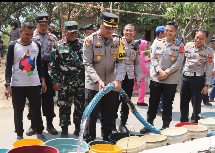 Kapolres Cirebon Kota Kembali Bagikan Air Bersih dan Sembako ke Warga Kopiluhur Argasunya