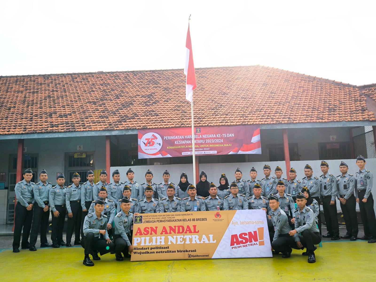Brebes, Patrolinews86,Com. – Bersamaan dengan rangkaian Upacara Peringatan Hari Bela Negara Ke-75 dan Kesiapan Pengamanan Nataru 2023/2024 yang bertempat di Lapangan Blok Hunian Lapas Kelas IIB Brebes pada selasa pagi ini (19/12/2022) telah dilaksanakan IKRAR NETRALITAS ASN pada pemilihan umum tahun 2024 untuk pegawai Lapas Kelas IIB Brebes.