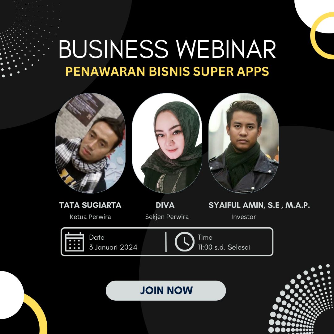 Perkumpulan Wirausaha ( Perwira ) dalam hal ini Tata Sugiarta yang notabene organisasi yang mendapatkan SK Penunjukan ( Juli 2023 ) dari Badan Perlindungan Pekerja Migran Indonesia ( BP2MI ) yang dulu dikenal dengan Badan Nasional Penempatan dan Perlindungan Tenaga Kerja Indonesia ( BNP2TKI ) ; Lembaga Pemerintah Non Departemen di Indonesia yang mempunyai fungsi pelaksanaan kebijakan di bidang penempatan dan perlindungan tenaga kerja, saat itu dikepalai oleh Bapak Beny Ramdani. Menjalankan program Bisnis Super AppStore dengan menggandeng Bapak Saiful Amin, SE., MAP. ( Bang Amin ) sebagai Investor dan Ketua Umum Forum Komunikasi Wartawan Indonesia – Solidaritas ( FKWI – S ) melalui Ibu Diva Sekretaris Jenderal Perwira dan Bendahara Umum FKWI – S.
