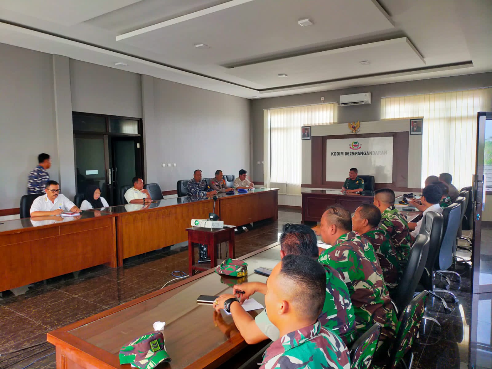 Rapat dihadiri oleh sejumlah pejabat dan Perwakilan instansi terkait, termasuk Kasdim 0625/Pangandaran, seluruh perwira jajaran Kodim 0625/Pangandaran, Pos AL, Kapolsek Sidamulih, Kasat Pol Air Polres Pangandaran, Dinas Lingkungan Hidup Kab Pangandaran, Dinas BPBD Kab Pangandaran, Dinas Sosial Kab Pangandaran, Dinas Kehutanan, Dinas Kesehatan, Dinas Pertanian, Kepala BKSDA, Kepala Tagana, Camat Sidamulih, Camat Cimerak, Kades Cikalong, dan Kades Bojong.