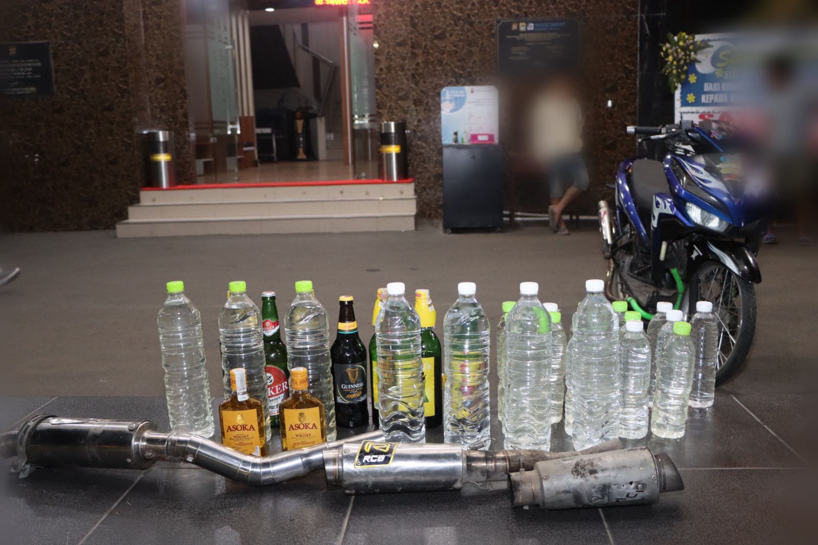 Pemeriksaan kendaraan dan identifikasi orang-orang yang berada di sekitar wilayah tersebut juga dilakukan sebagai langkah preventif untuk menghindari potensi gangguan Harkamtibmas. Hasilnya, petugas mengamankan total 356 botol miras yang terdiri dari 226 botol ciu, 85 botol miras berbagai merek, 45 Liter tuak, dan 51 knalpot brong.