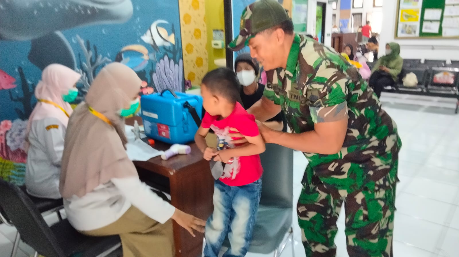 Dalam rangka mensukseskan Program Pemerintah tentang Pekan Imunisasi Anak bertempat di Pukesmas Kratonan Jln. Pringgodani No. 34 Kratonan Serengan Kota Surakarta, Pada Hari Rabu tgl 24 Januari 2024 Pukul : 08.00 Wib Bati Bakti TNI Sersan Mayor Yudhi Widianto Koramil 03 / Serengan Kodim 0735 / Surakarta, membantu kegiatan pemberian Imunisasi Polio Anak