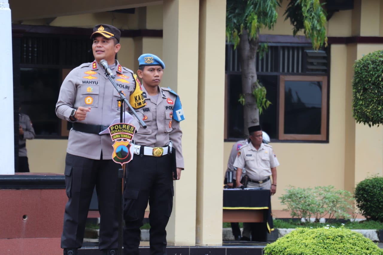 Pekalongan Jawa Tengah Patrolinews86.com – Kapolres Pekalongan AKBP Wahyu Rohadi, S.I.K., M.H. memimpin apel kesiapan pengamanan TPS dan simulasi pengawalan kotak suara pemilu 2024 yang digelar di halaman Polres Pekalongan, Selasa (06/02/2024) pagi. Dalam apel ini hadir diantaranya para pejabat utama Polres Pekalongan, Kapolsek jajaran, perwira staf dan diikuti seluruh personil yang terlibat pengamanan TPS.