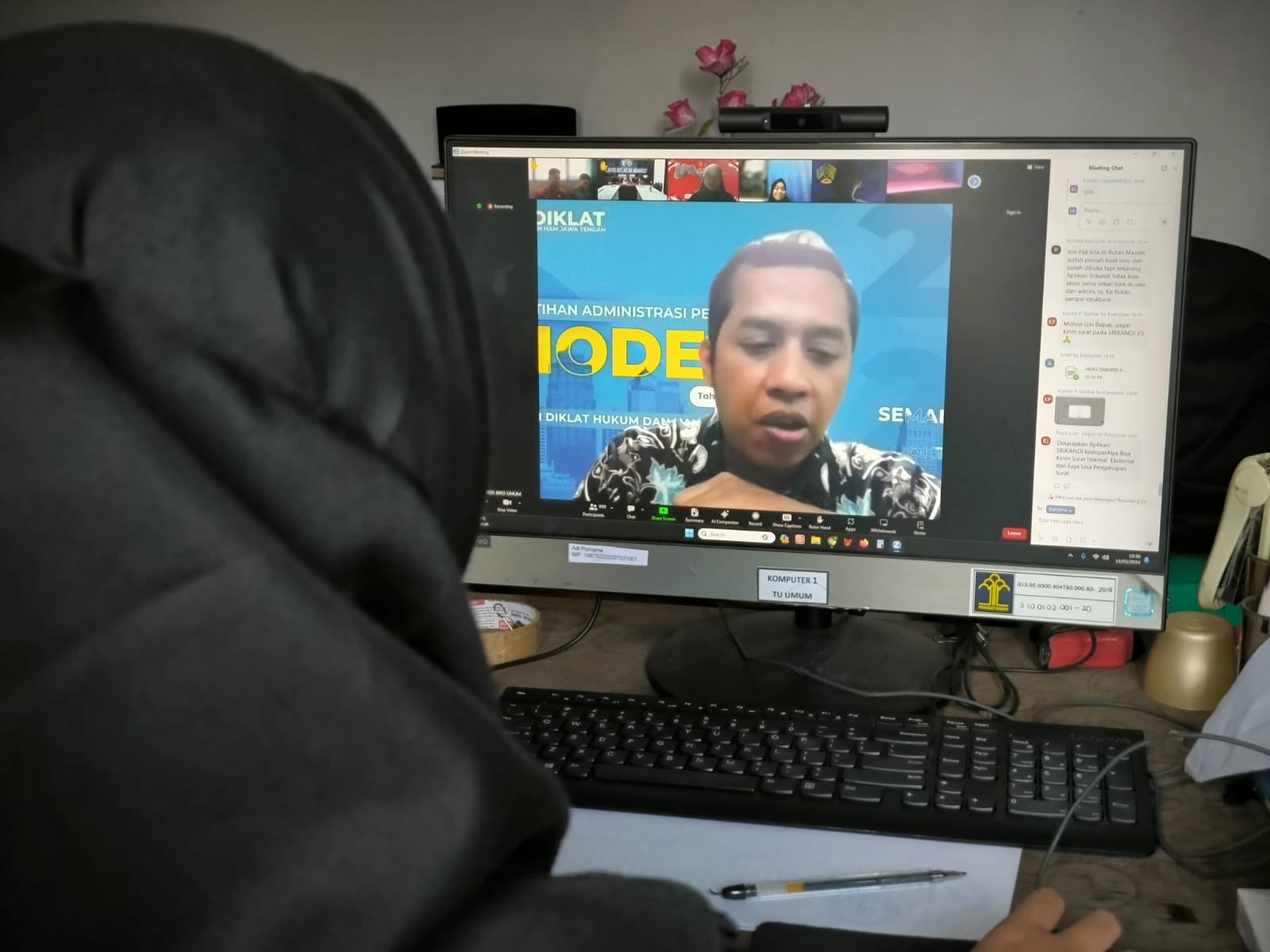 Brebes, Patrolinews86, Com. – Lapas Kelas IIB Brebes mengikuti kegiatan Sosialisasi Aplikasi Srikandi (Sistem Informasi Kearsipan Dinamis Terintegrasi) secara virtual menggunakan aplikasi Zoom, Kamis (15/02).