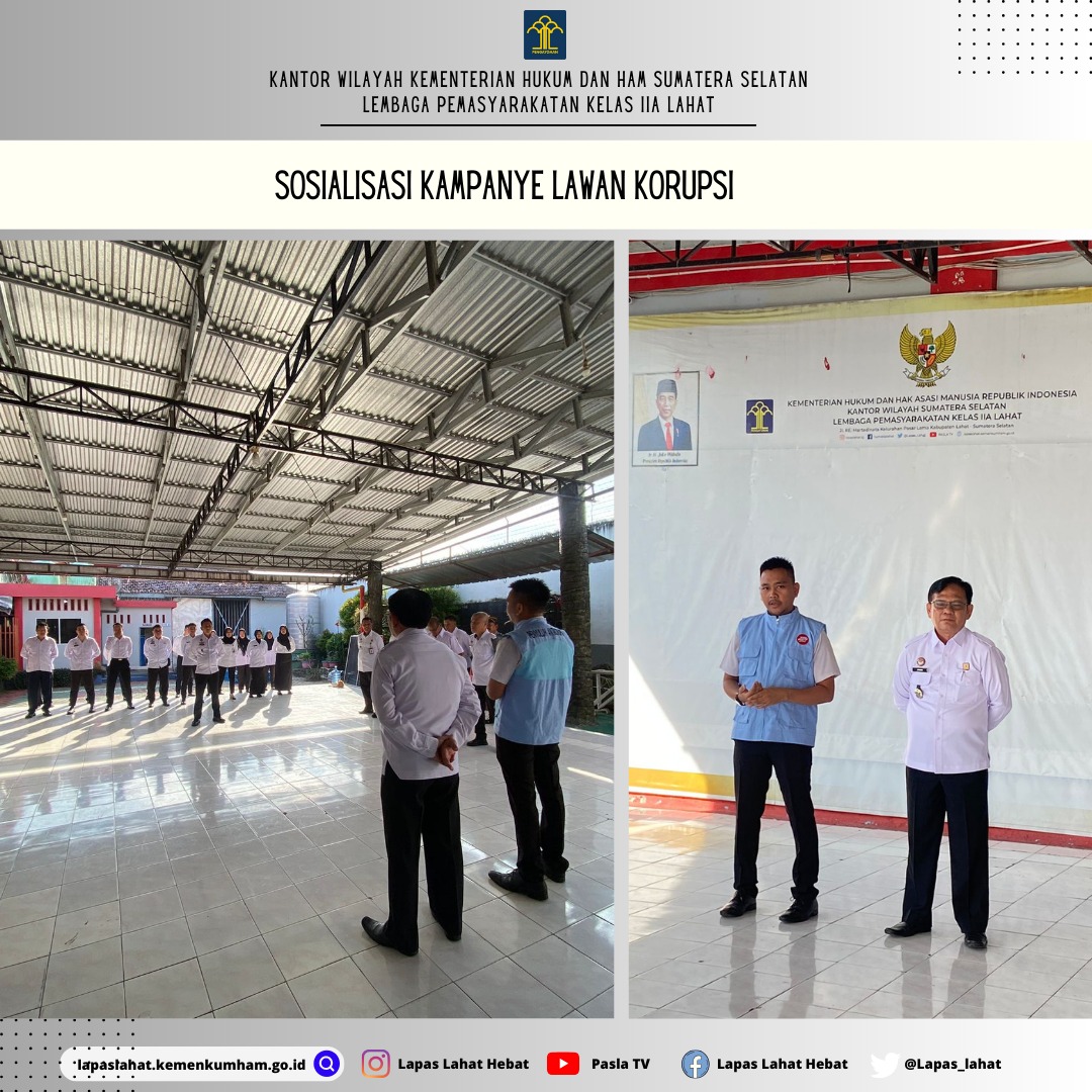 Lahat -Sumsel : Patrolinews86.com -Dalam pelaksanaan Apel Pagi Pegawai Lapas Kelas IIA Lahat, Rabu 21 Februari 2024 juga dilaksanakan Sosialisasi Kampanye Lawan Korupsi.