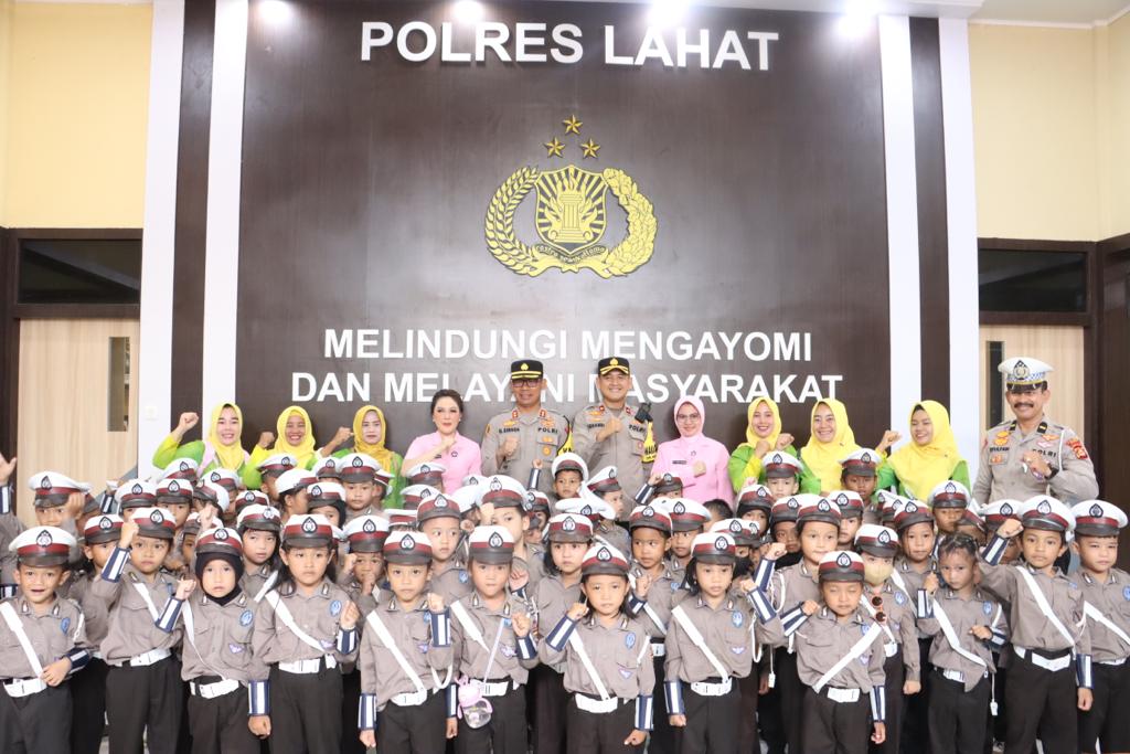 KAPOLRES LAHAT TERIMA KUNJUNGAN TK BHAYANGKARI 12 & 13 LAHAT KE KANTOR SATLANTAS DAN POLRES LAHAT